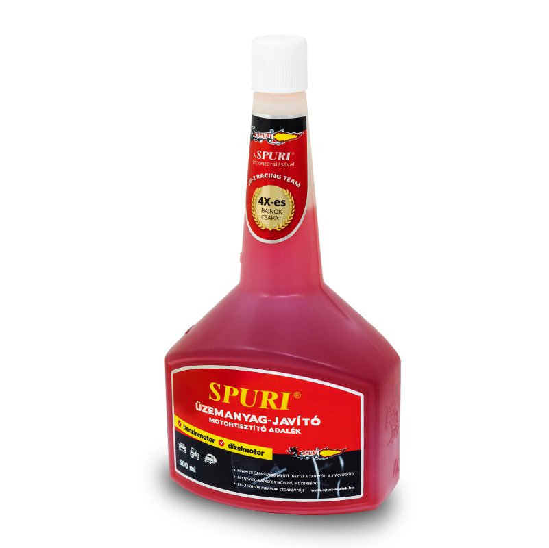 Mennyiség: Általában 50–100 liter üzemanyaghoz egy flakon Spuri adalék elegendő (kövesd a gyártó utasításait).